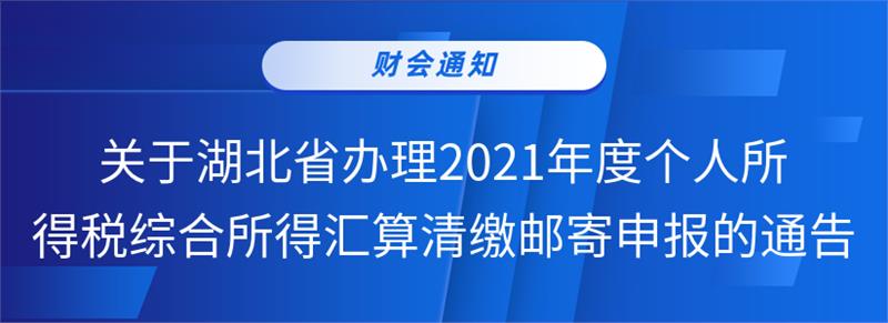 尊敬的个人所得税纳税人:根据《国家税务总局关于办理2021年度个人所得税综合所得汇算清缴事项的公告》(国家税务总局公告2022年第1号),现将我省2021年度个人所得税综合所得汇算清缴邮寄申报有关事宜通告如下:一、邮寄申报的适用范围任职受雇单位所在地(无任职受雇单位的,为户籍所在地、经常居住地或主要收入来源地)在湖北省范围内,且根据国家税务总局公告2022年第1号第三条规定的需要办理年度汇算的纳税人,不方便通过网上税务局办理(包括手机个人所得税APP,下同)或办税服务厅办理的,可以通过邮寄申报方式办理个人所得税综合所得年度申报。