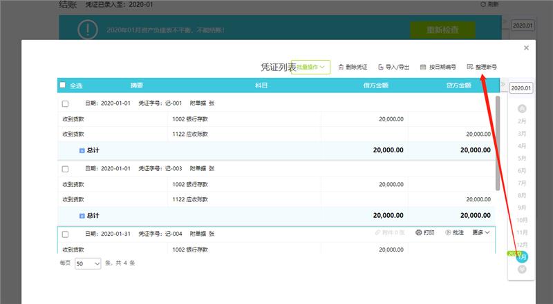 2.单击异常项目中文字,会跳转到问题界面联查,可修改无误后,继续检查结账。