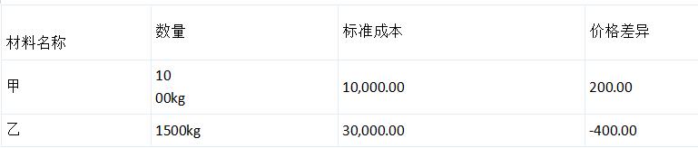 2.1采购原材料 甲材料的价格差异=98700-10000*10=-1300元