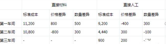 直接材料-甲材料-价格差异= -1100/11000*10000=-1000元, -数量差异=(9900-2500*4)*(110000-1100)/11000=-990元 -标准成本=2500*4*10=100000,