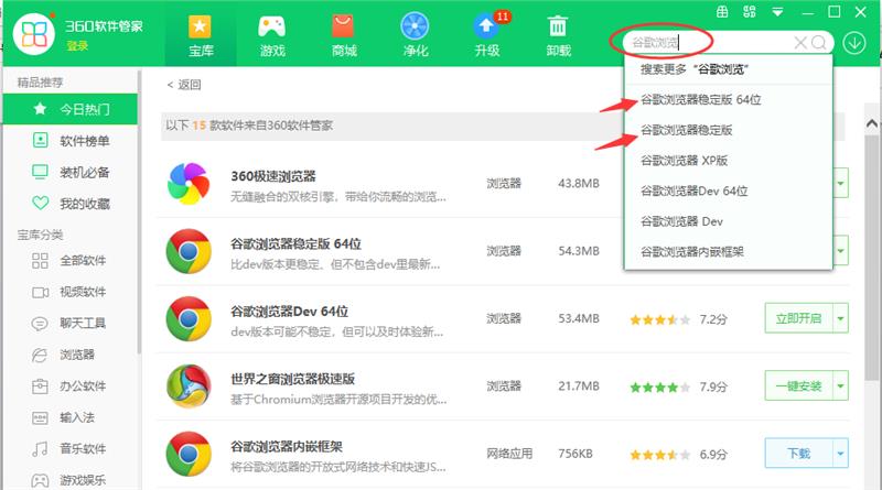 鉴于多数客户使用360电脑卫士,可以使用360的软件管家搜索谷歌浏览器