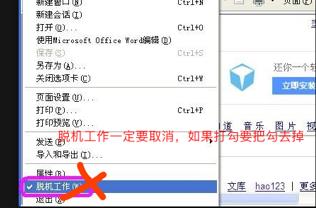 主要是针对IE11以下浏览器,⽤IE任意打开⼀个⽹⻚,如果是脱机状态,IE会有警告提示,点击去除勾选脱机工作,再重新刷新一下网页;