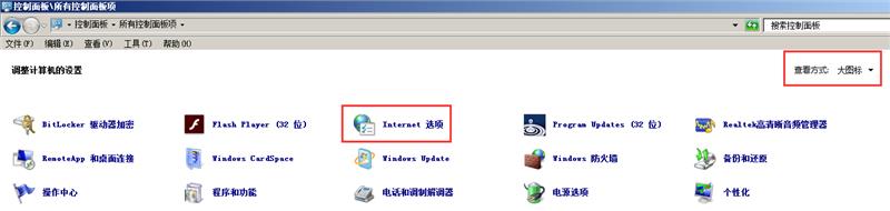 点击开始一控制面板,将查看方式选择大图标或小图标,再点击Internet选项