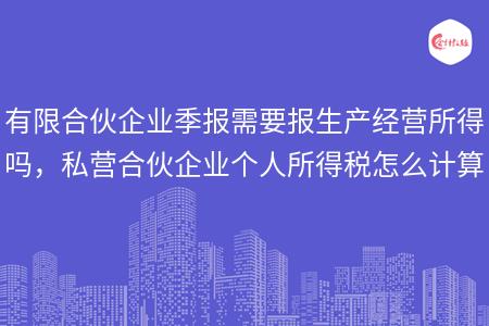 企业需要申报企业所得税,而个体户申报的是个人所得税,就有会计新手来问小编有限合伙企业季报需要报生产经营所得吗,私营合伙企业个人所得税怎么计算呢,合伙企业是需要申报生产经营个人所得税,国际对这样的企业征收税款是有一定的要求,那接着在下文看看私营合伙企业个人所得税如何计算吧。