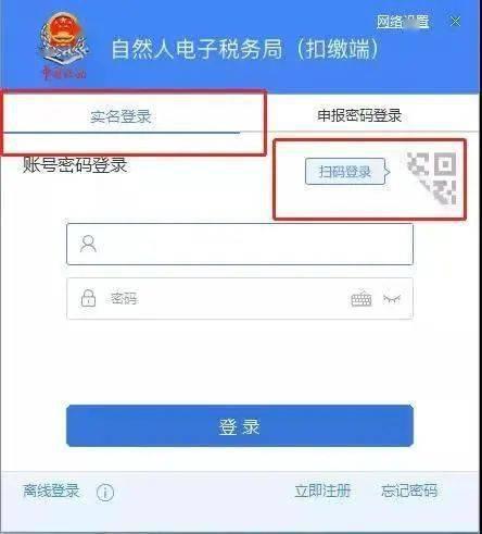 打开“自然人电子税务局(扣缴端)”,选择“实名登录”,使用账号密码登录或者个税APP扫码登录。