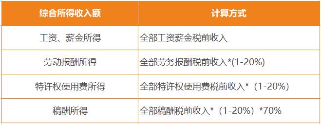 劳务报酬所得为全部劳务报酬税前收入的80%计算;特许权使用费所得为全部特许权使用费税务收入的80%计算;稿酬所得为全部稿酬税前收入的80%的基础上,再减征30%,即全部稿酬税前收入的56%进行计算。