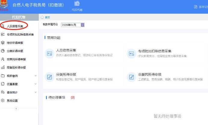 2、选择左边人员信息采集后添加,然后根据页面内容输入自己的准确信息,如果没有员工输入法人的也可以,任职日期填上个月的1号(如以前添加过则跳过此步骤)。