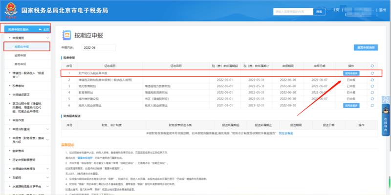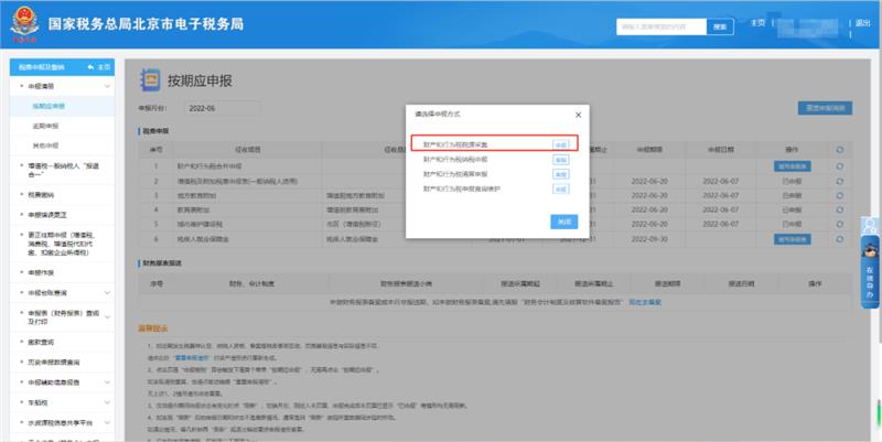 二、税费申报及缴纳—按期应申报—财产和行为税合并申报。