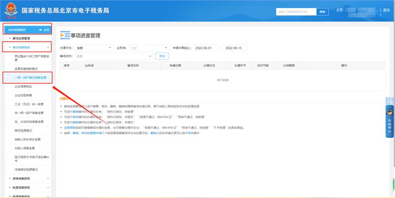 二、综合信息报告—身份信息报告—一照一码户登记信息变更。
