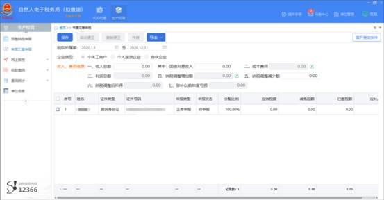2、进入“生产经营”申报模块后点击左侧的“年度汇缴申报”进入申报表。