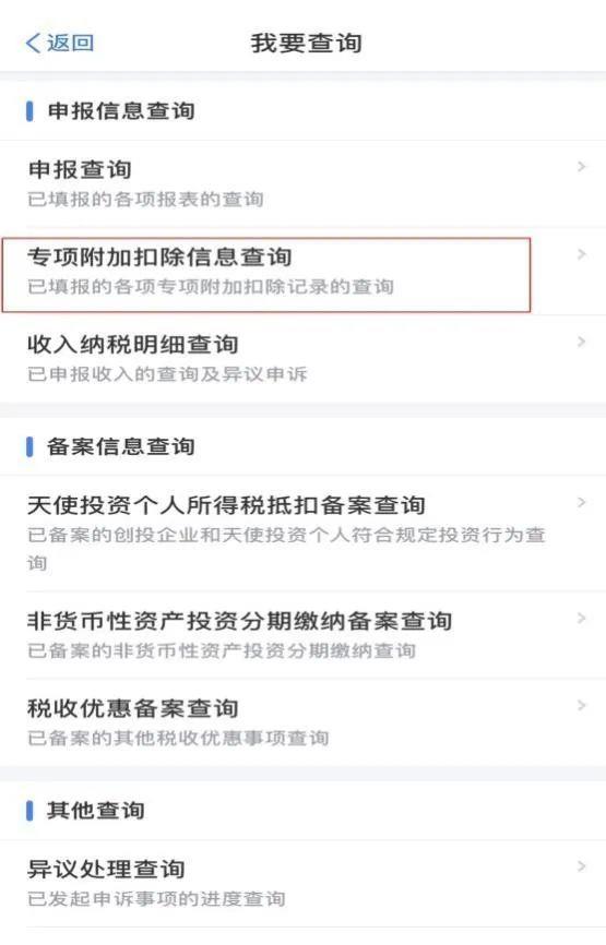 第一步:登录“个人所得税”APP,点击【我要查询】中的【专项附加扣除信息查询】