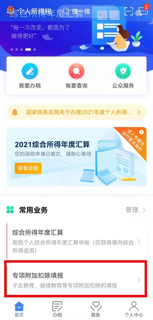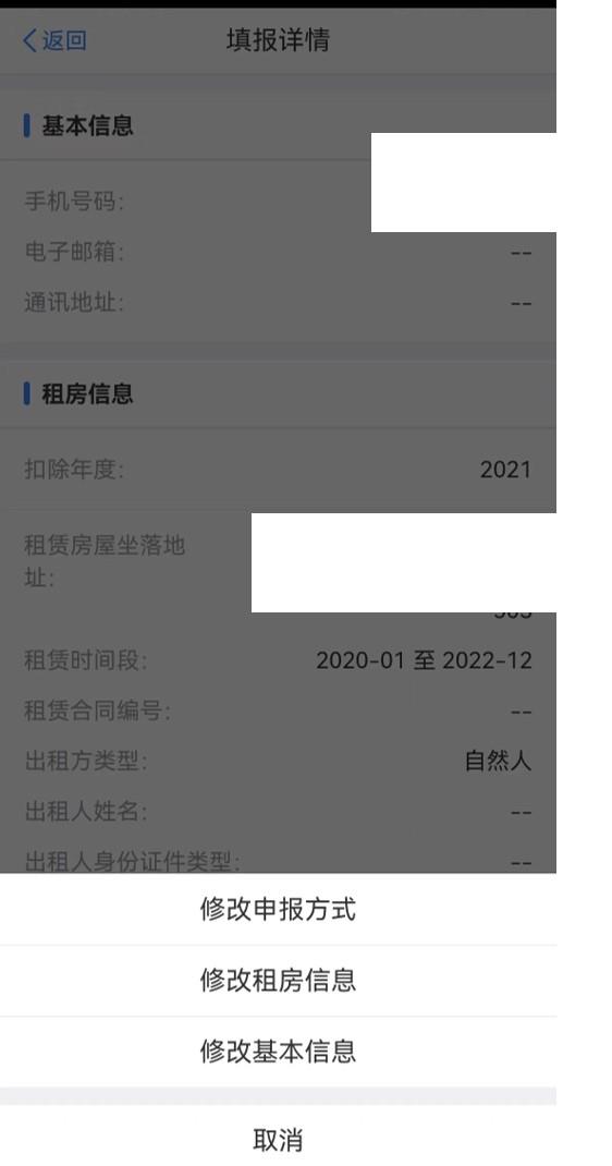 路径二:首页点击【专项附加扣除填报】,选择需要修改的年度,点击【住房租金】专项附加扣除。