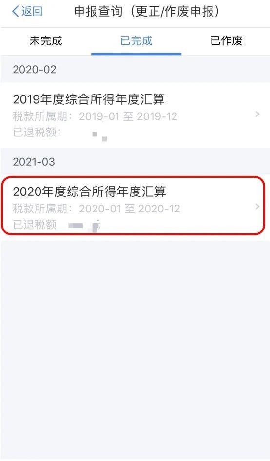 在“申报查询”页面,如您需办理更正申报,请点击【2020年度综合所得年度汇算】,在“申报记录详情”页面,点击【更正】-【更正年度自行申报】。根据实际情况正确填报您的各项申报数据,按照提示完成更正申报。