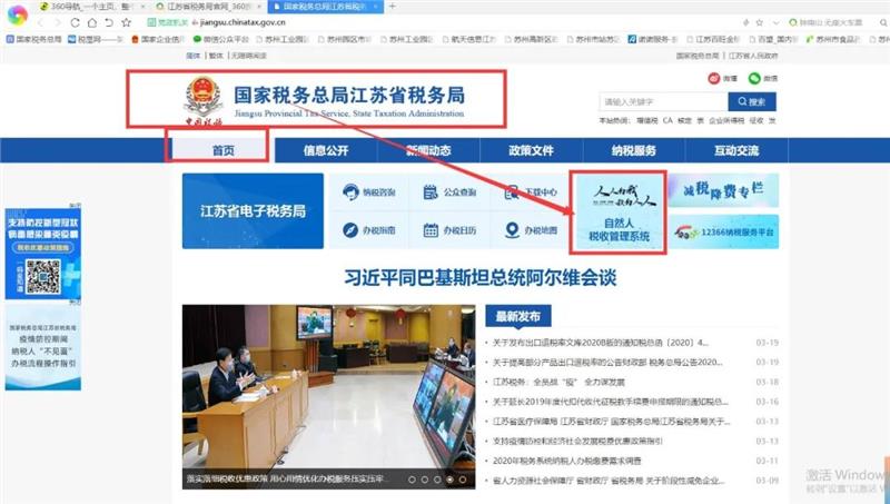 1、纳税人登录江苏省税务局网站首页--点击自然人税收管理系统模块,如下图示: