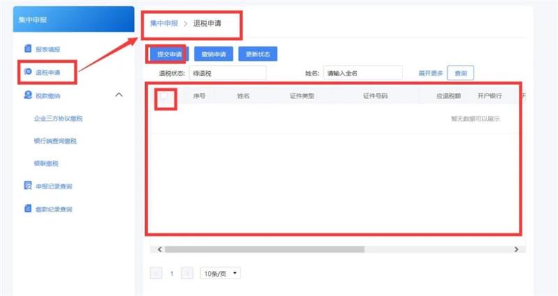 单位按照上述集中申报的申报表填写保存后,就可以知道是否可以退税,显示可以退税的,需要填写退税申请表。