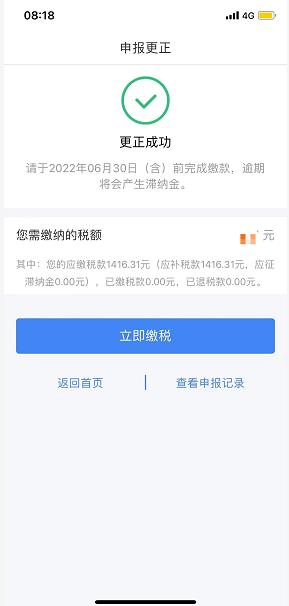 税款计算完成后如需缴税则跳转到缴税页面,点击“立即缴税”核对金额无误后“确认缴税”进行缴款。