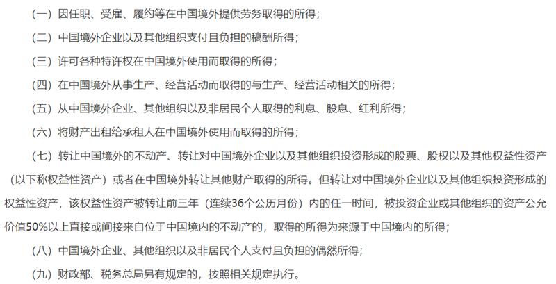 同时根据(财政部 税务总局公告2020年第3号)规定下列所得,为来源于中国境外的所得,应当在取得所得的次年3月1日至6月30日内申报纳税: