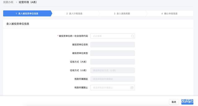 第四步:按照引导依次录入被投资单位信息,计税信息,减免税额并确认申报信息,系统会自动算应纳税额。