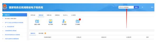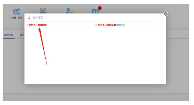 1、进入电子税务局后右上角搜索:输入财务会计制度备案。