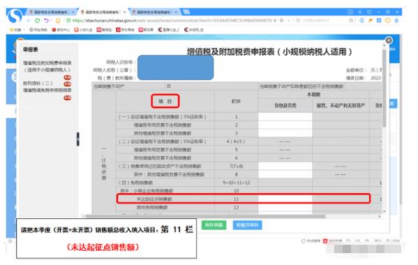 (1) 个体工商户和其他个人填写第11栏"未达起征点销售额";