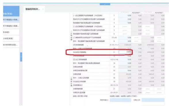 ②代开了普通发票或只领了定额发票,就将代开的发票价税合计总额(票面总价÷1.03=应填金额)或领取的定额发票总额填写至11栏未达起征点栏次,以截图单位为例,月核定额5000所以季度定额为15000(5000*3个月),将15000填至11栏即可保存申报。