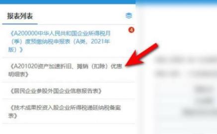 4. 点击左边的资产加速折旧优惠明细表。
