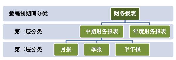 A.按财务报表编制的期间不同, 分为中期财务报表,年度财务报表。中期财务报表包括 月报、季报、半年报。