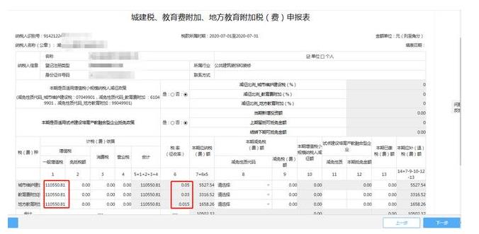 3)附税申报:城建税、教育费附加、地方教育附加税(费)申报表,增值税金额自动填列,如果错了可以修改,税率一般也是默认的。