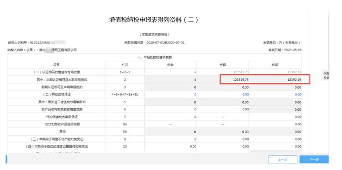 2.4.增值税纳税申报表附列资料(二):本期进项税额明细