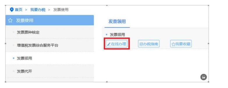 登录电子税务局,点击我要办税--发票使用--发票领用--发票领用模块可进行在线办理。