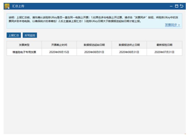 税务Ukey需要进入汇总上传页面进行反写监控。