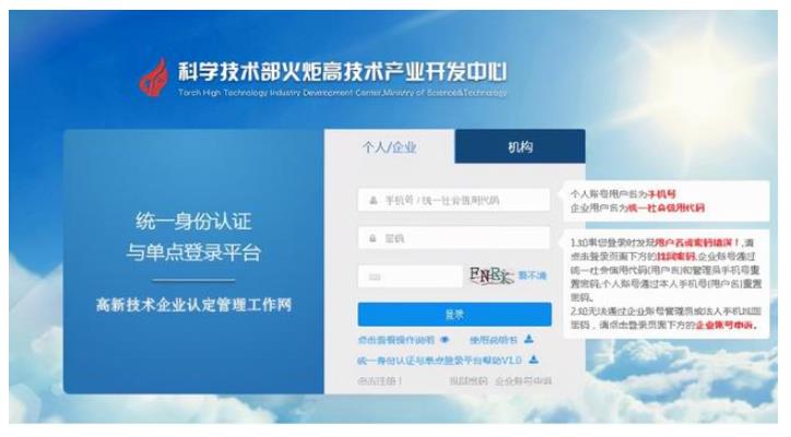 3、登录:用申报高企时的用户名和密码登录(统一社会信用代码+密码);