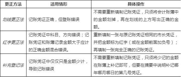 错账是过账和结算账户时发生的错误,如漏记、重记、记反、记串户、记错金额等。账簿记录发生错误,不准涂改、挖补、刮擦或用药水消除字迹,应按一定的方法进行更正。有三种更正方法,分别是划线更正法、红字更正法、补充登记法。