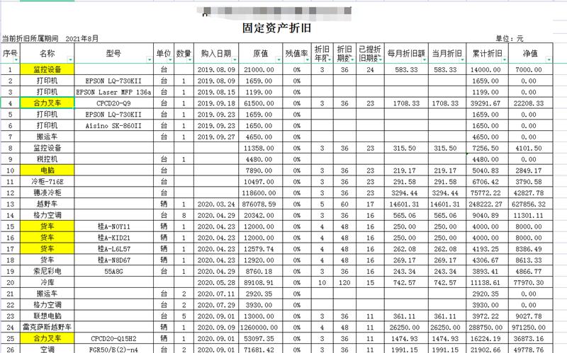 涂黄色的固定资产是8月发出售的,那8月份出售的话8月份不是还要计提折旧吗?那我这个计提表怎样做呀?